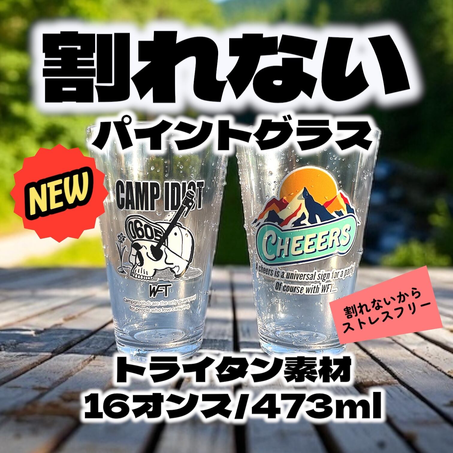 WFTオリジナルパイントグラス。ガラスより軽く割れないトライタン素材を採用。落としても割れないのでアウトドアシーンや取り扱いにもストレスフリーなアイテムです。