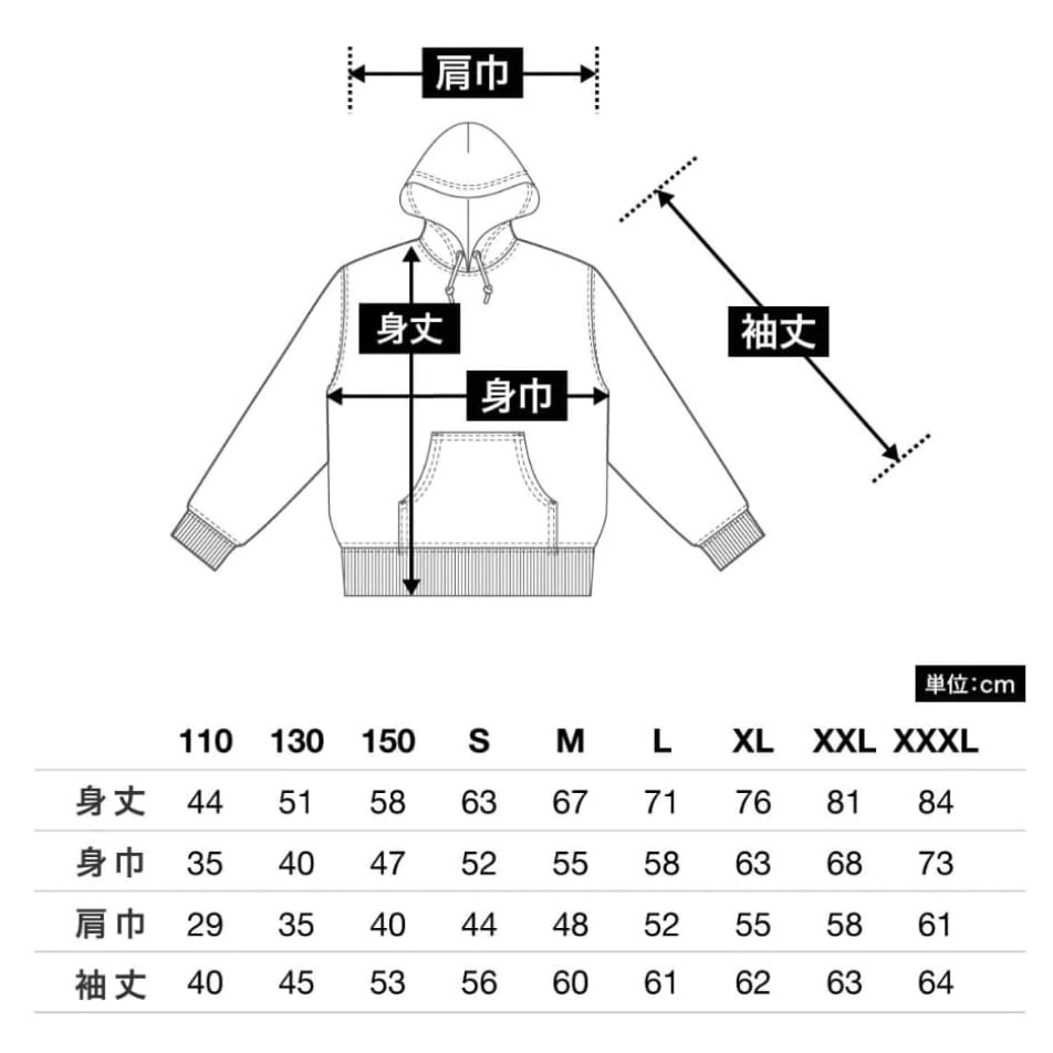 素材:コットン100%、裏パイル生地、10.0oz